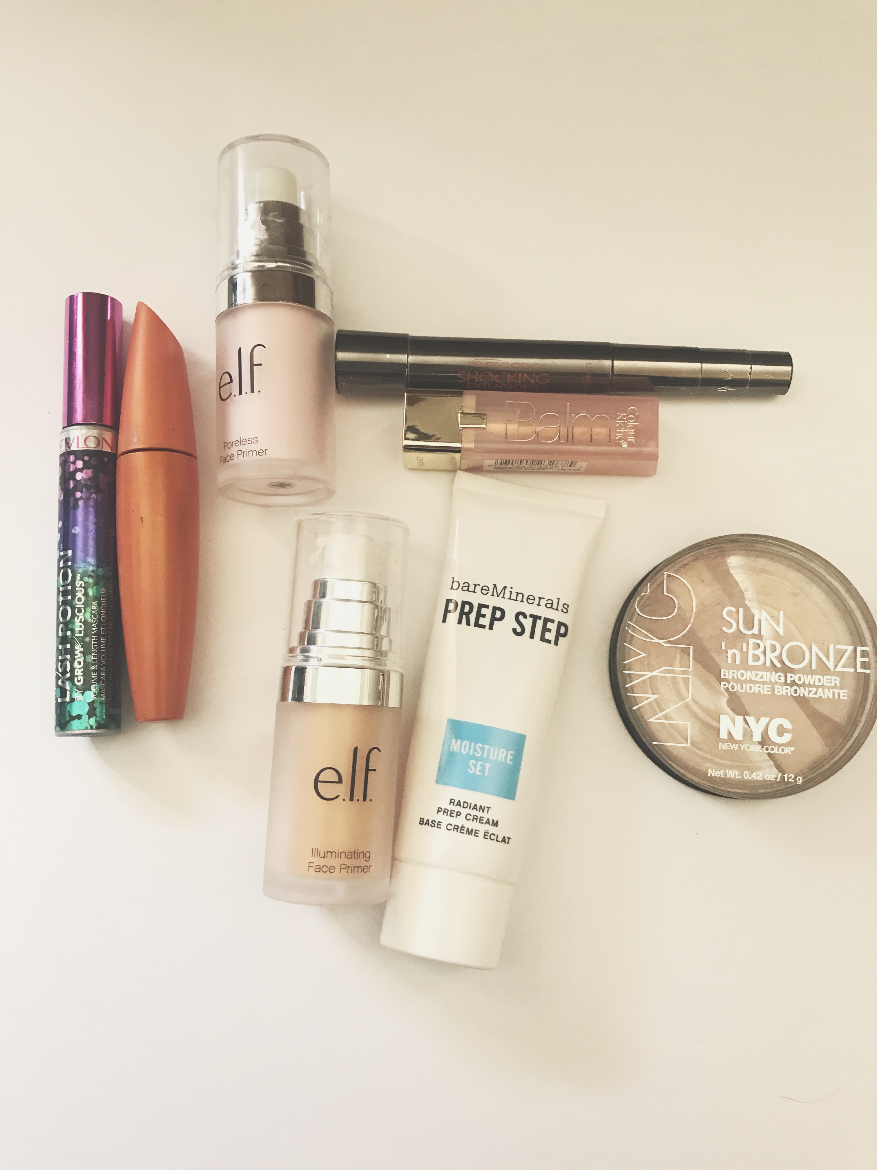 ELF Poreless Face Primer. I have used a bottle of this primer before but did not have the same outcome as my previous experience. After I would apply my foundation, over the primer, the primer seemed to pill up and leave little grey dots all over my face. Because of that reaction, I’m not sure if I would buy this primer again. The Radiant Glow primer did the same thing on my skin, but I did like the luminosity that this product gave.