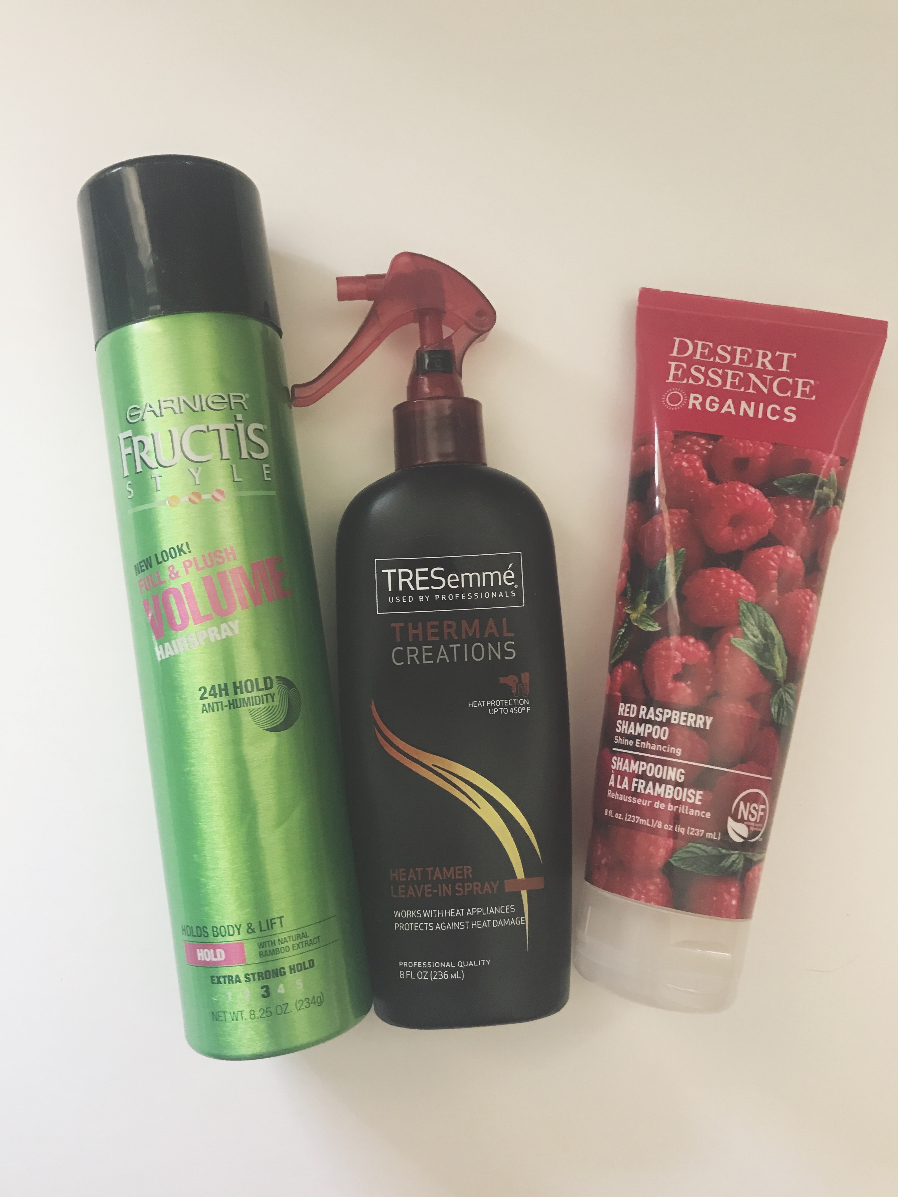 Garnier Volume Anti-Frizz Hairspray. This is my favorite hairspray to use because it holds for a long time and it protects against humidity.